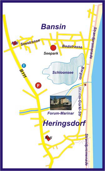Ortsschild Bansin, bei Lidl links in die Seestrasse einbiegen.